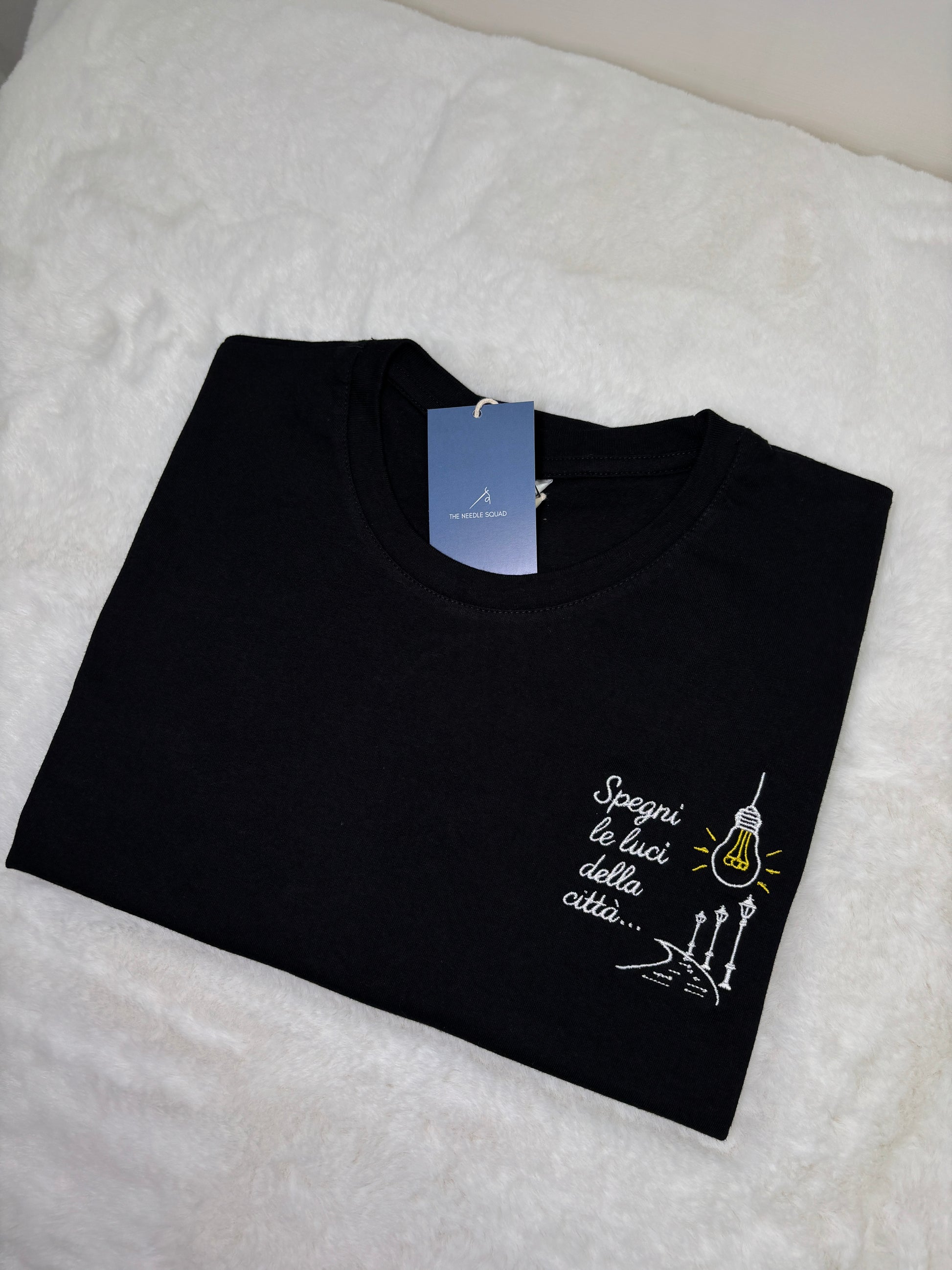 Ottimo tessuto della t-shirt e le scritte ricamate sono fatte veramente bene